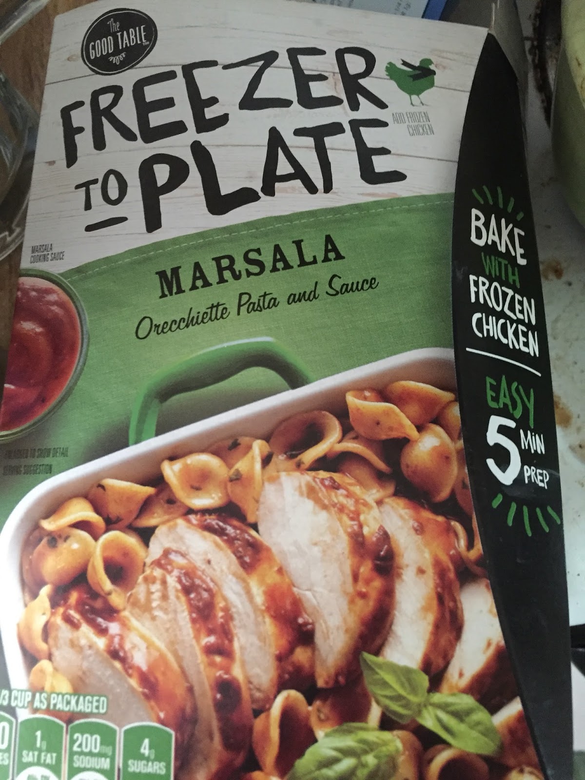 Good Table Freezer to Plate by General Mills. There were four choices: Lemon Garlic Herb Chicken, Southwest Chicken, Chicken Marsala, and Teriyaki Chicken. I love Marsala, yet have yet to make it from scratch and have it be really good. My main problem when I make it is trying to remember what kind of Marsala wine to buy. Now I don’t have to.