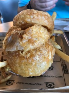 Jackie, the woman who took care of us was wonderful. She made sure that our first visit to Burgerfi was not our last. She let us taste their special burger sauce that is usually reserved for the burgers but people like to use with their onion rings and fries. Check out the size of the onion rings.